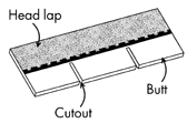 Cutout - The open portions of a strip shingle between the tabs.
